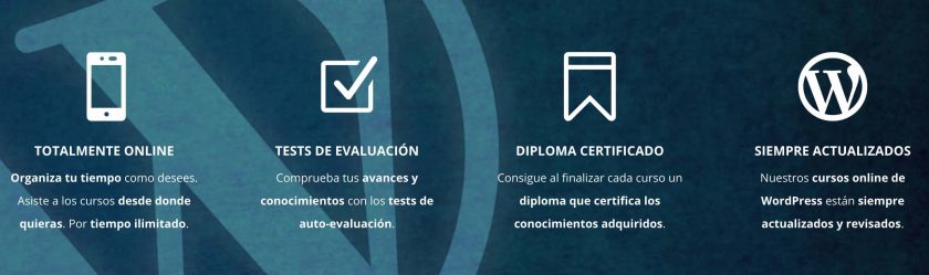 A mi me gusta el contacto directo con el alumno, el seguimiento, y eso no se perderá en los cursos online, tanto por cómo explico las cosas en los vídeos, igual que en cualquier clase, como por el hecho de que en todos los cursos online de WordPress habrá descargas de archivos, ejercicios y pruebas de evaluación, además de certificados de finalización, que sé que gusta tenerlos.