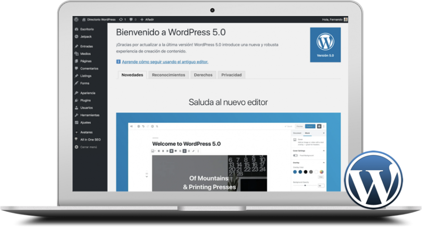- WordPress 5.x siempre actualizado.