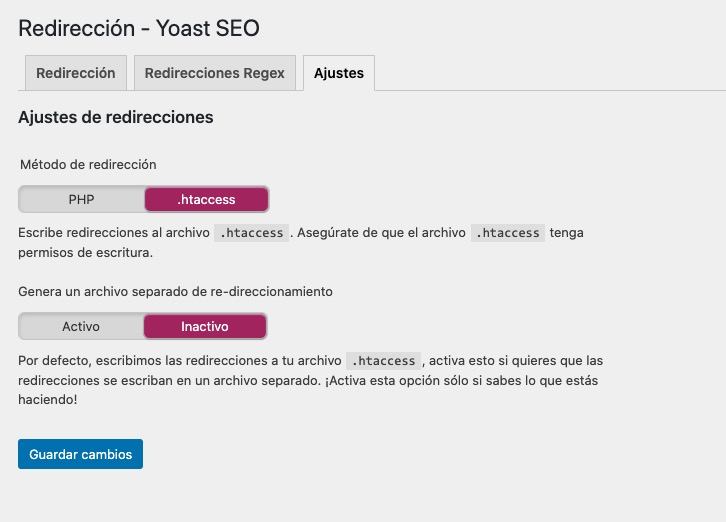 Porque, por si no lo sabías, no hay ningún ajuste en la configuración de Yoast para desactivarlas, así que tendrías 2 motores de redirección automática activos, y eso es peligroso, estarías duplicando redirecciones.