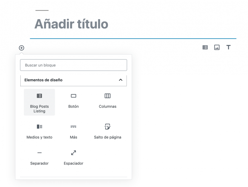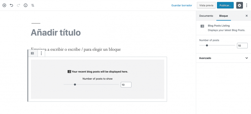 En la fase actual, lo único que encontrarás, casi seguro, es un nuevo bloque, llamado «Blog Posts Listing«.