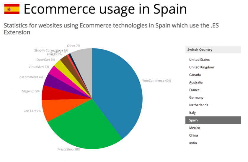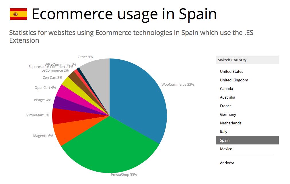 De hecho la implantación de PrestaShop es del 30% frente a un 28%, y subiendo, de WooCommerce, algo impensable hace nada.