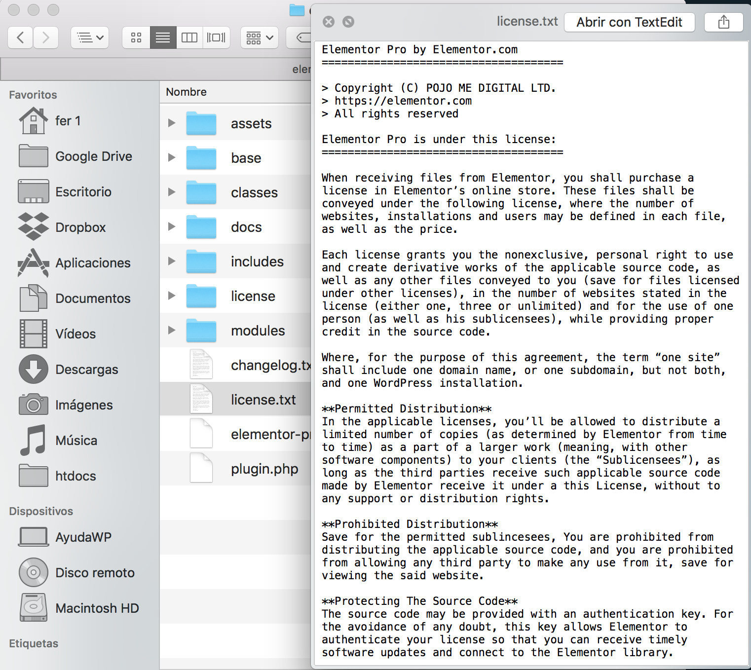 El problema es que eso hay que saberlo para hacerlo valer, mientras que la licencia que acompaña Elementor Pro dice cosas bien distintas, que sus abogados defenderían en caso de que tú decidieses aplicar las libertades de la GPL sobre Elementor Pro.