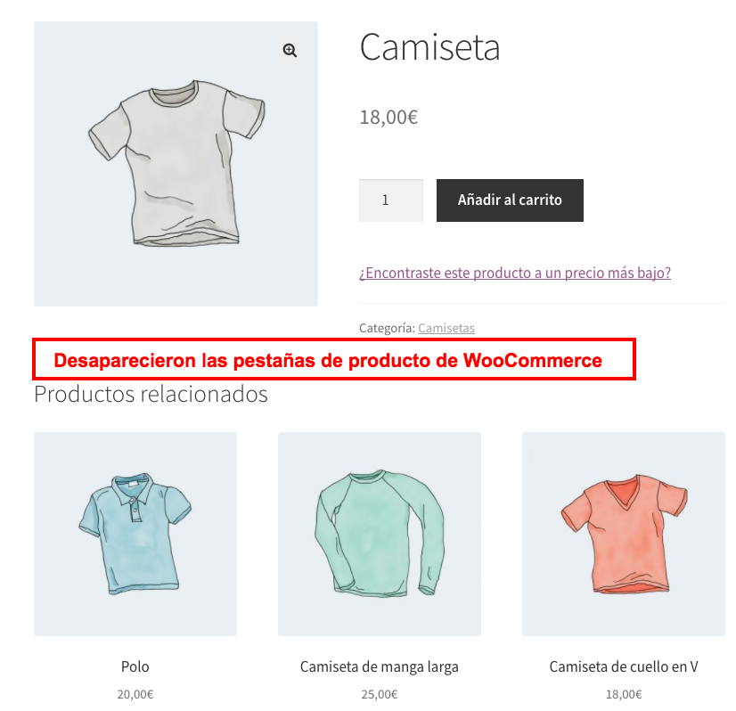 WooCommerce por defecto muestra al menos 2 pestañas además de la información básica del producto, la de la descripción del producto y la de las valoraciones, pero si no las necesitas puedes eliminarlas fácilmente.
