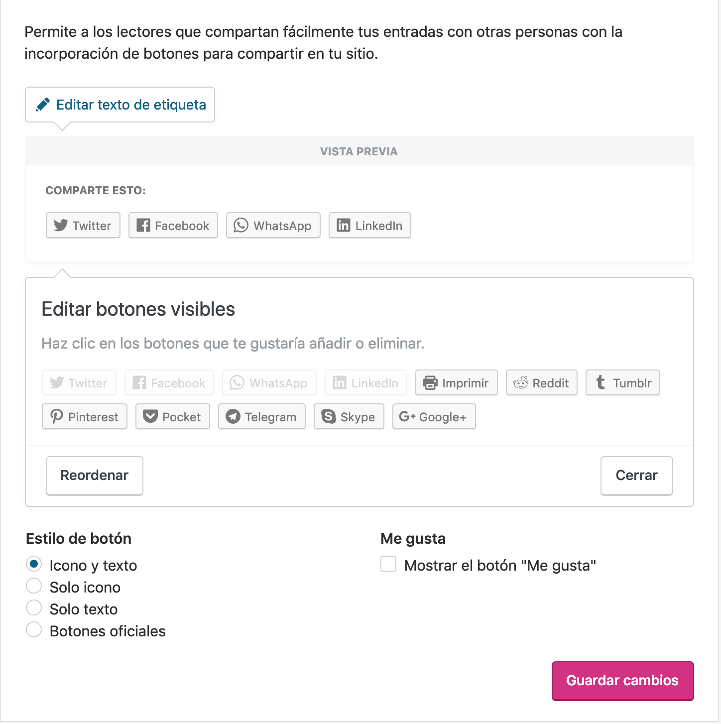 Aunque hay plugins mucho mejores para iconos sociales, y aunque verás que la mayoría de los bloggers profesionales usan/amos Monarch por sus muchas virtudes y configuraciones, la realidad es que el módulo de iconos de compartir de Jetpack cumple de sobra con su función.