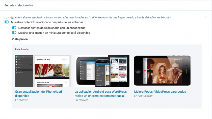 Por el contrario, el módulo de entradas relacionadas de Jetpack relega prácticamente toda la necesidad de recursos a la CDN de WordPress.com, y para mejorarlo aún más, no deja ni rastro de su paso en tu preciada y nunca bien cuidada base de datos.
