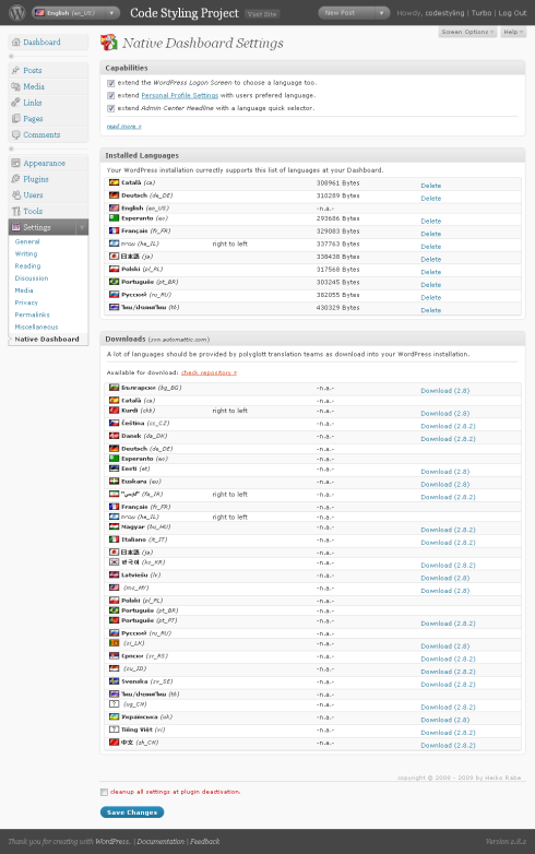 Para ello nos valdremos de una auténtica maravilla – y barbaridad – de plugin, llamado WordPress Native Dashboard. Su objetivo es precisamente ese, permitir a los usuarios registrados disponer del Escritorio de WordPress en su idioma, o el que elijan.