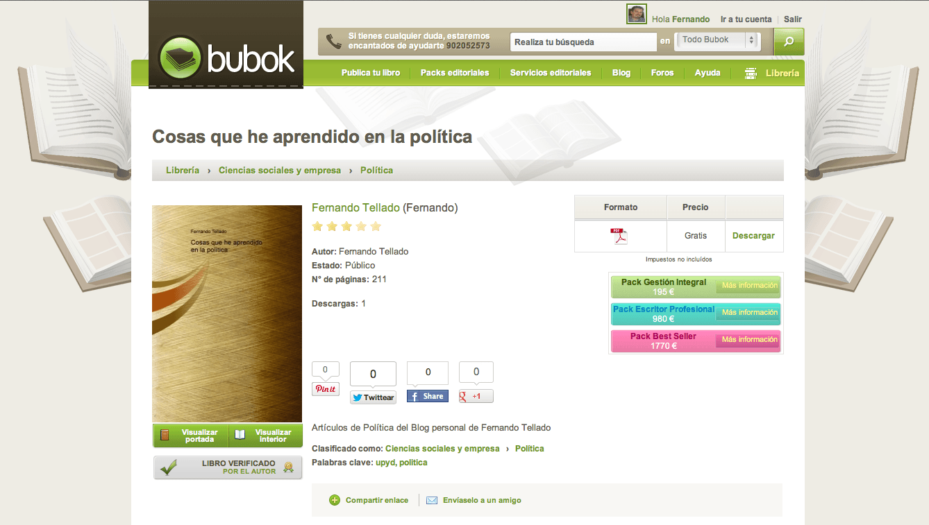 Que es una opción rápida, pero no eficaz, pues siempre será mejor que tu mismo crees el PDF y selecciones formatos, añadas paginación, título, etc y luego lo publiques en Bubok, o donde prefieras. Es un proceso mucho más lento pero el resultado será lo más profesional posible, algo que no consigue el plugin, y sino descarga la prueba que he hecho, avisándote que ya he modificado precio, nombre y portada.