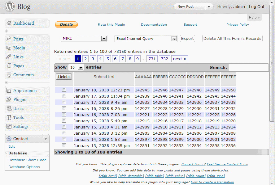 Pues bien, hay un plugin, Contact Form 7 to Database, que guardar los formularios en la base de datos y te permite visualizarlos en cualquier momento y, lo que es mejor, exportarlos, desde el mismo plugin o con el procedimiento siguiente que te cuento al final.