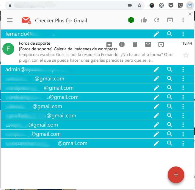 Es un simple y pequeño icono en la barra de herramientas de Chrome que te informa de los nuevos correos a medida que llegan, pudiendo incluso contestar desde su vista previa.