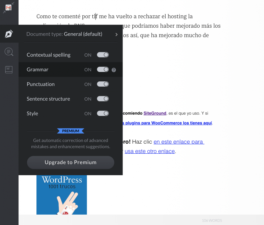 Si te gusta escribir en inglés siempre correctamente, con esta extensión vas a dejar de cometer errores de ortografía y gramática cuando uses servicios como Gmail, Facebook, Twitter, Linkedin, Tumblr y otros (lamentablemente, actualmente no reconoce WordPress).