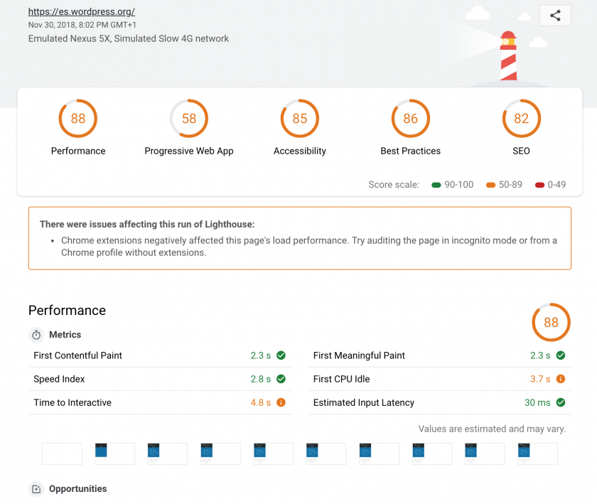 Si estás realmente comprometido con la optimización y velocidad, con el WPO, esta extensión oficial de Google activa el motor LightHouse de análisis de velocidad y optimización web, que es el que usa actualmente para determinar los valores de la herramienta PageSpeed.