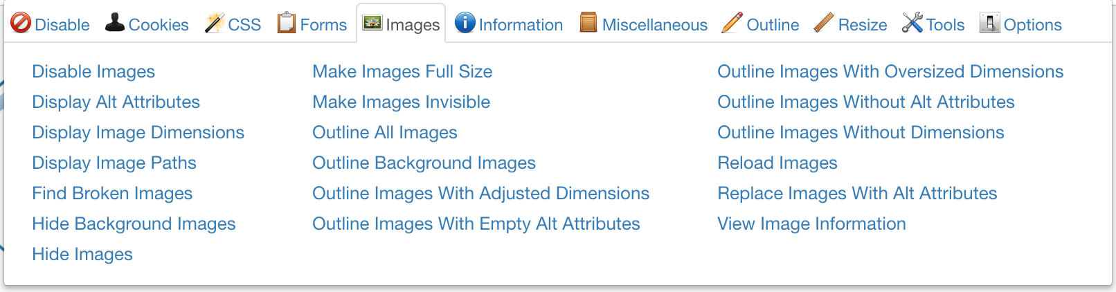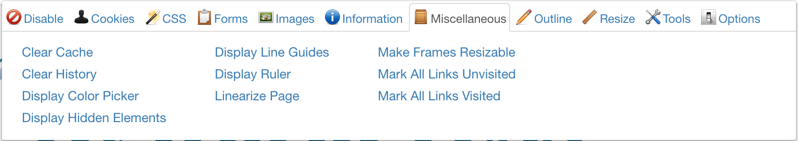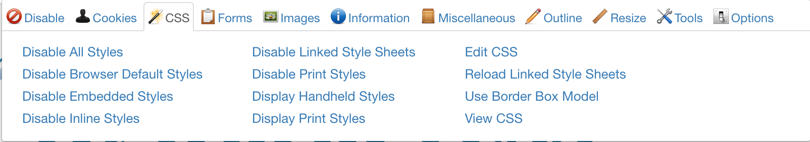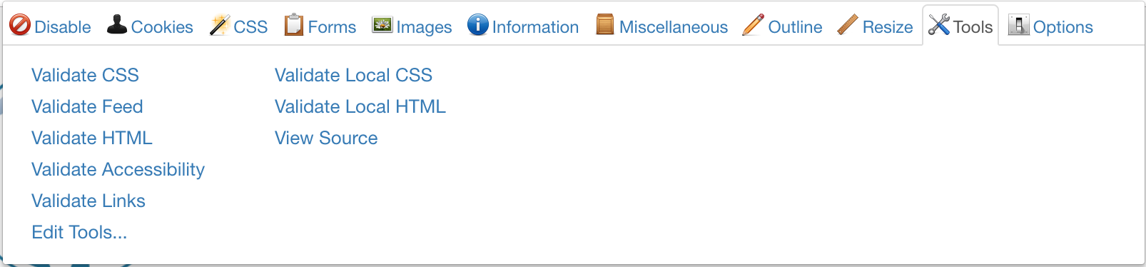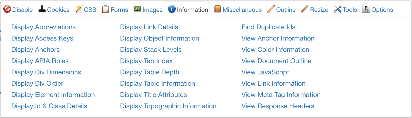 Un aporte: ¿conocés la extensión WAVE Evaluation Tool (evaluar accesibilidad)? A mi me resulta muy útil.
