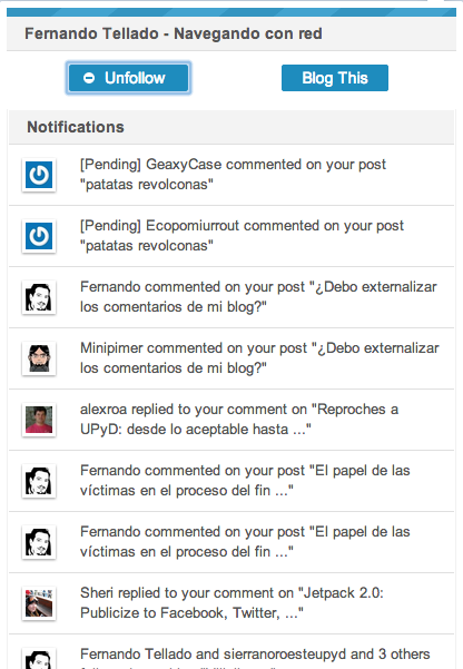 A partir de ahí se inicia la magia pues, igual que con la barra de WordPress, pero ya desde cualquier sitio web, puedes seguir un sitio si es de WordPress.com o tiene instalado el JetPack con la integración, hacer «reblog» del mismo, y sin salir de ahí atender a los avisos de comentarios en tus sitios.