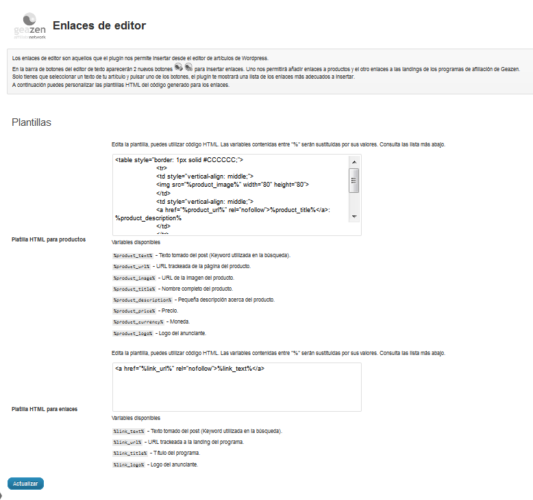 Geazen Plugin es un desarrollo de la empresa española de afiliación Geazen, que ha optado por facilitar la vida a los bloggers, y en concreto a los que usamos WordPress, al ser esta la plataforma mayoritariamente elegida por nosotros.