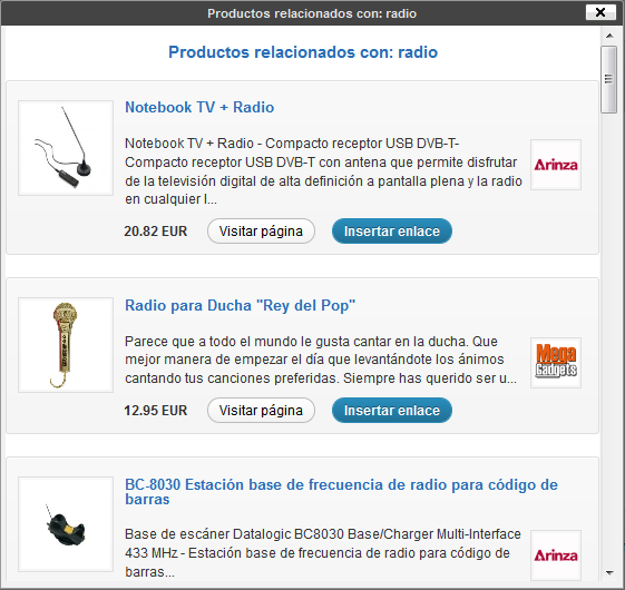 - Inserción de productos de todos los catálogos de Geazen en nuestros posts.