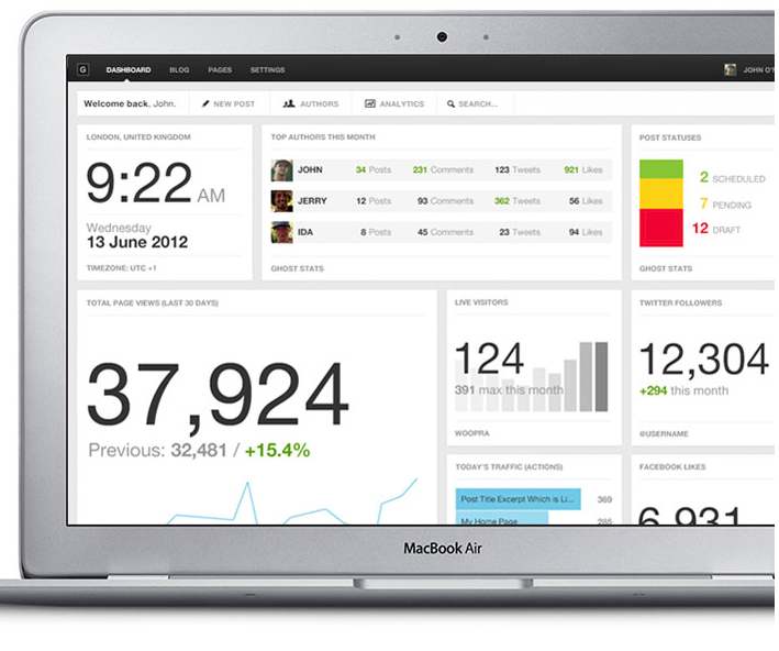Lo que nos propone, además de unas bonitas futuribles capturas de como podría quedar Ghost si se sigue este concepto simple y bloguero, a saber:
