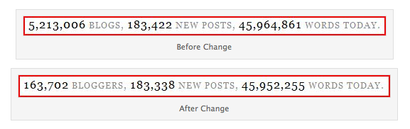 Nuevas estadísticas – Al contrario que antes, que se mostraba la cantidad de blogs existentes, ahora se muestra una lista de los bloggers activos en los últimos días, una cifra mucho menos impresionante pero mas real de la actividad de la comunidad.