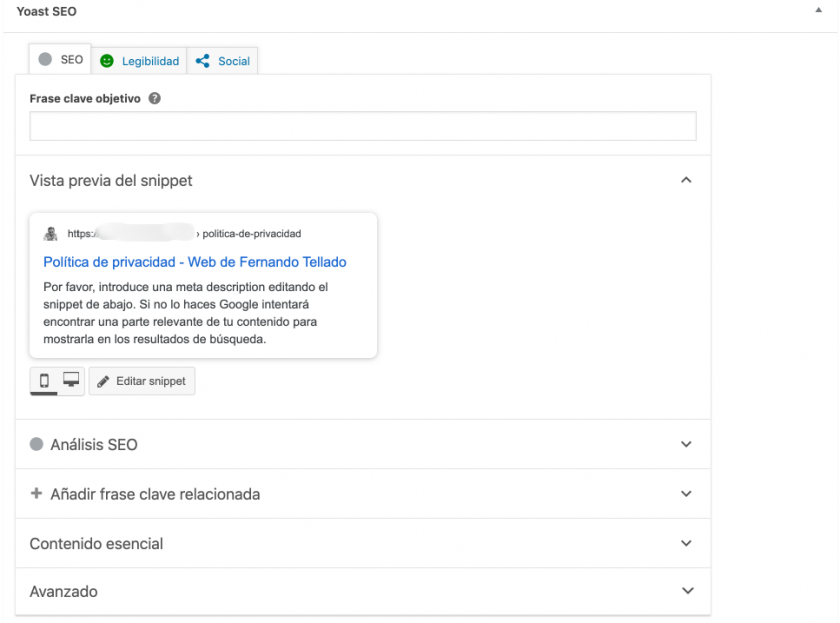 Esto es parte de lo genial que es Yoast SEO, pues es muy sencillo.