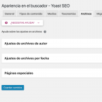 Así que, salvo que tengas varios autores en tu sitio, donde el enlace al archivo de cada autor muestre distintas entradas, es mejor hacer caso a Yoast SEO e inactivar ese ajuste.