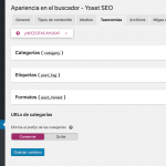 Ya que estamos, por si no lo habías hecho antes, si has decidido indexar taxonomías, deberías personalizar el título, descripción, snippet y todos los elementos positivos para el SEO que puedas editando cada una ayudado de la caja meta de Yoast.