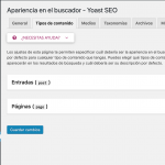 Para personalizar qué tipo de contenidos tendrán un sub-mapa en el mapa del sitio XML de Yoast lo haremos desde la sección de ajustes SEO > Apariencia en el buscador.