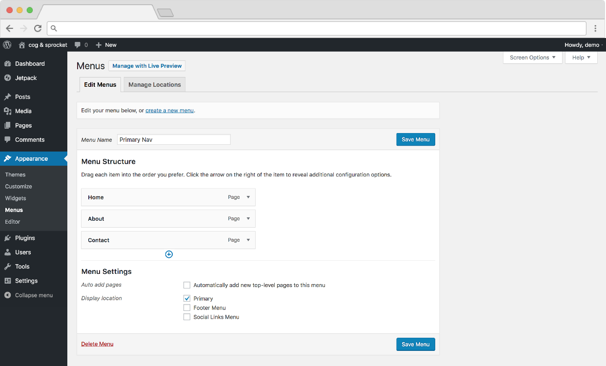 post_content. - Convertir la gestión de menús personalizados a bloques.