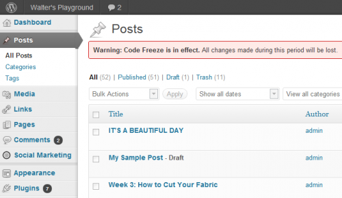 Cuando haya pasado la situación que requirió el uso del plugin Code Freeze simplemente lo desactivas y todo vuelve a la normalidad, sin tablas añadidas a tu base de datos y todo de vuelta a la normalidad.
