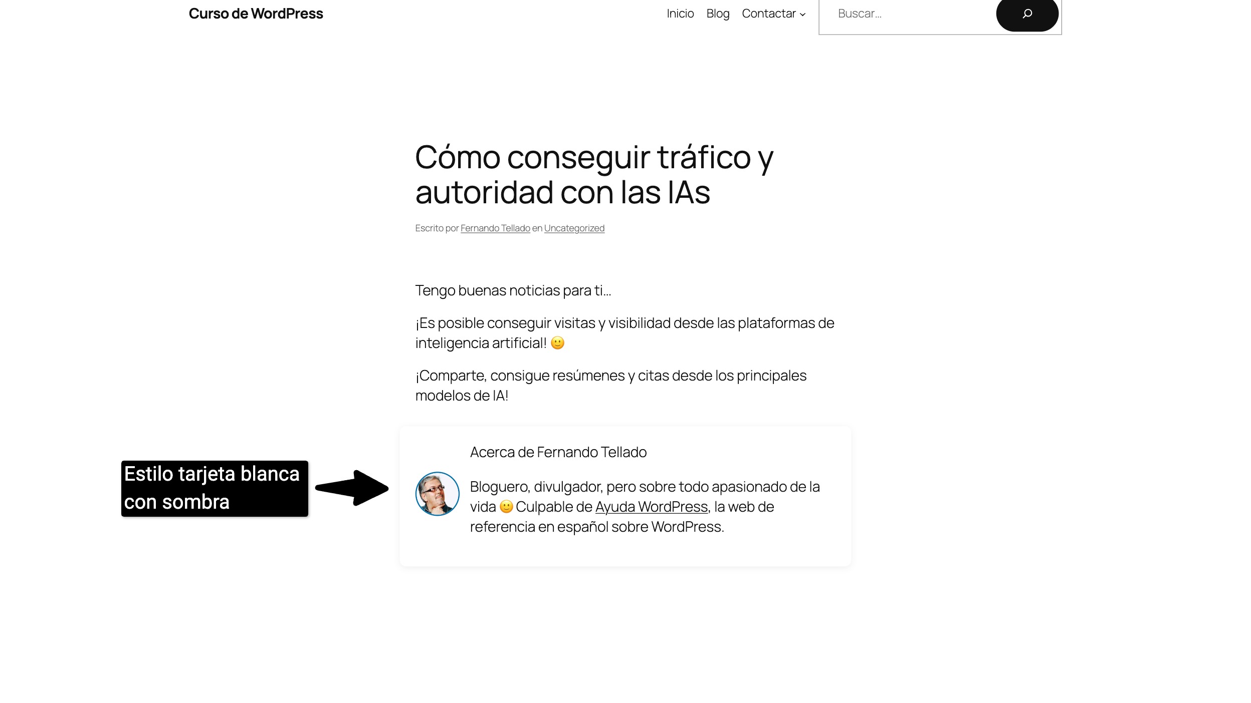 Siempre ha sido importante, pero cada vez lo será más (hazme caso) saber que el contenido de un artículo, ya sea técnico o de opinión, lo ha escrito una persona, y por eso tiene todo el sentido mostrar en la web, al final de los contenidos individuales, una pequeña caja informativa sobre el autor.