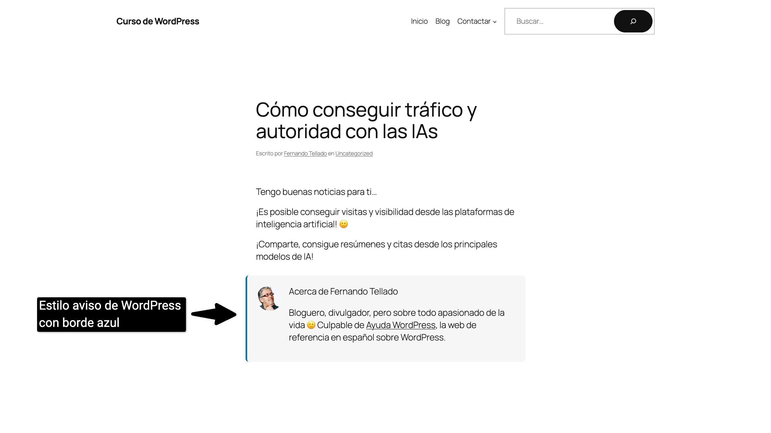 Estilo aviso de WordPress con borde azul