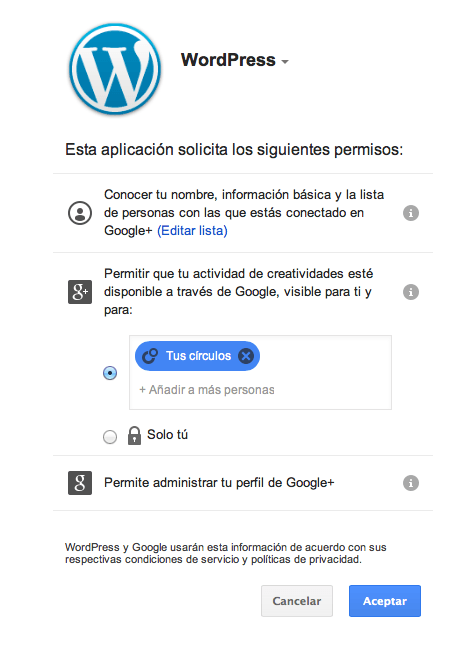 - Publicar comentarios con tus credenciales de Google si tienes activo el módulo de comentarios de JetPack