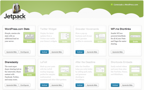 JetPack es un mega-plugin que incluye otros plugins hasta ahora separados, que se pueden desactivar al ser módulos independientes. Los plugins que incluye son los siguientes: