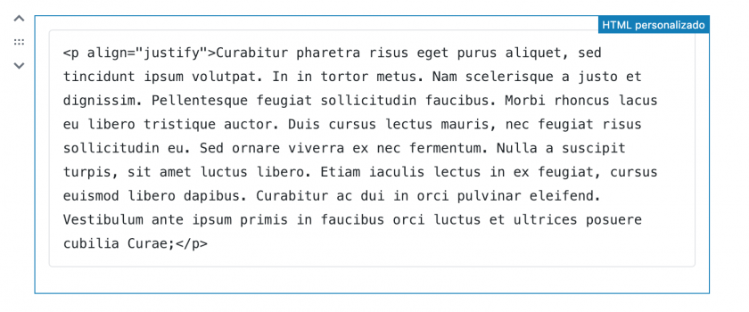 Otra posibilidad es crear una clase CSS propia y usarla en aquellos bloques que quieras justificar el texto. El proceso es sencillo.