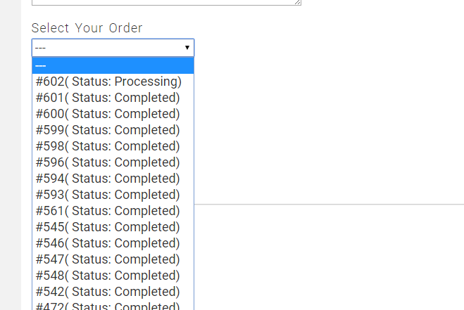 Pues aquí lo tienes. Con esta extensión puedes añadir un nuevo campo a tus formularios para que el usuario elija desde una lista desplegable el pedido sobre el que realiza la consulta. Simplemente genial y tremendamente útil para tiendas online.