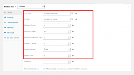 Una vez activo el plugin creas un producto y, en vez de simple, variable o cualquiera de los tipos de producto habituales, eliges el tipo de producto llamado «Lottery».