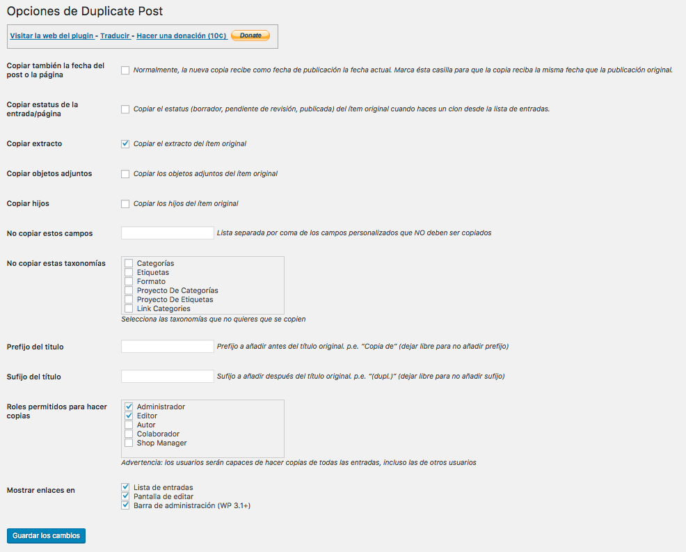 Hay veces que pienso que no sabría vivir sin el plugin Duplicate Post, son tantas las veces que me ha facilitado la vida que su autor, Lopo, merece un monumento, o al menos un pequeño donativo.