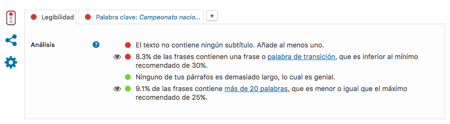 .@Yoast es el plugin perfecto de #SEO para el marketing de contenidos Compartir en XSin entrar en otras funcionalidades del plugin, el análisis de contenido y de legibilidad, con sus sugerencias de mejora del SEO y legibilidad del texto, la configuración social y el editor del snippet son herramientas fundamentales que pueden ayudar a los autores a generar mejores contenidos, definir palabras clave y crear publicaciones que enamoren a tu audiencia y a los buscadores.