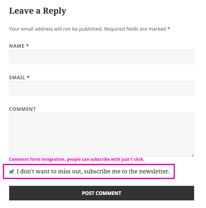 Si utilizas este popular servicio de gestión de listas de correo entonces Mailchimp For WordPress es obligatorio. Además de ofrecer un widget para insertar fácilmente el formulario de suscripción a tus listas, también puedes añadir una casilla (marcada por defecto o no) a tu página de registro de WordPress y al formulario de comentarios, y también te ofrece estadísticas.