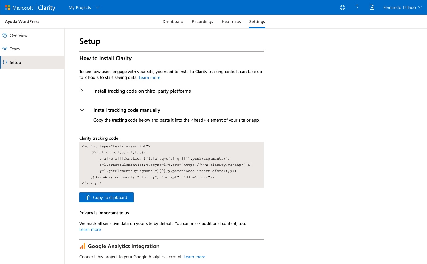 Cómo instalo Microsoft Clarity Analytics en WordPress