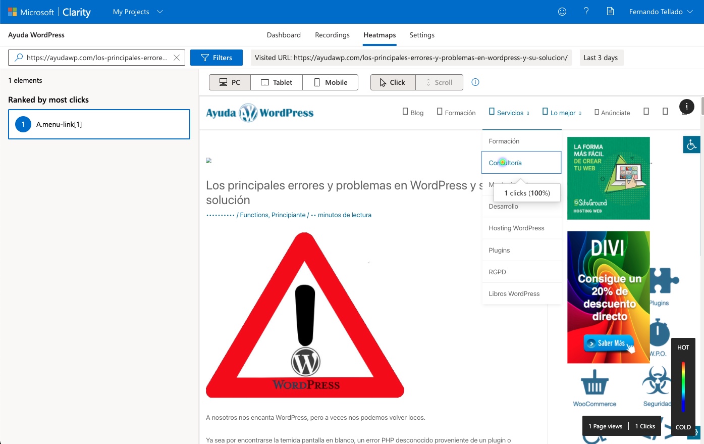 Puedes aprender mucho sobre la usabilidad real de tu web gracias a Microsoft Clarity Analytics, pues verás interacciones de usuarios reales, que nunca navegan igual que tú, que ya sabes dónde está cada cosa ¿verdad?