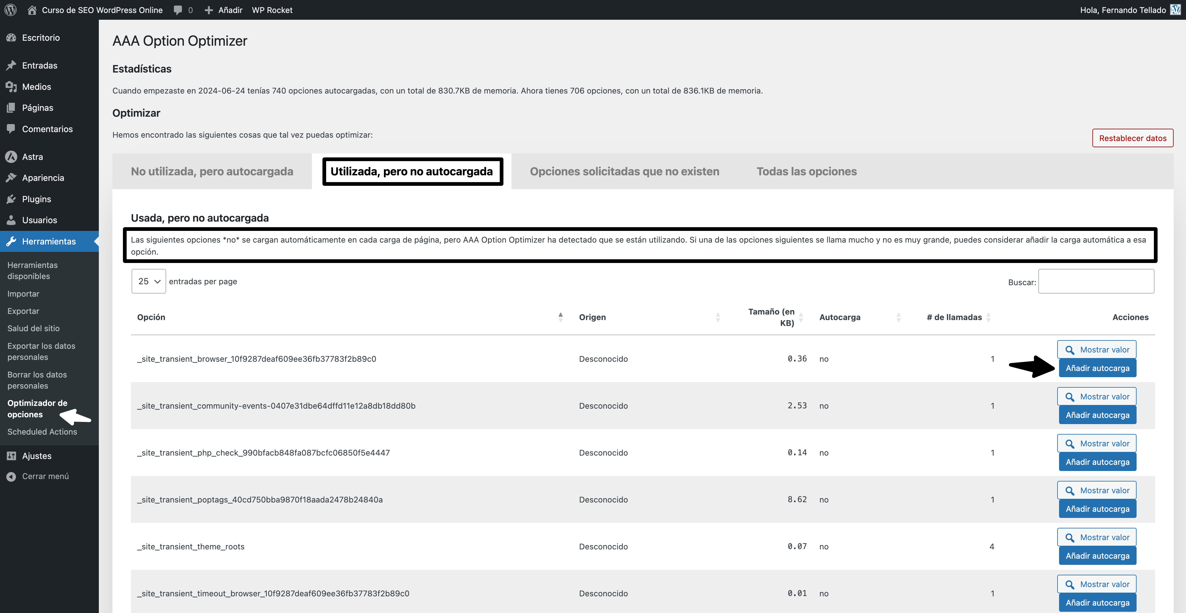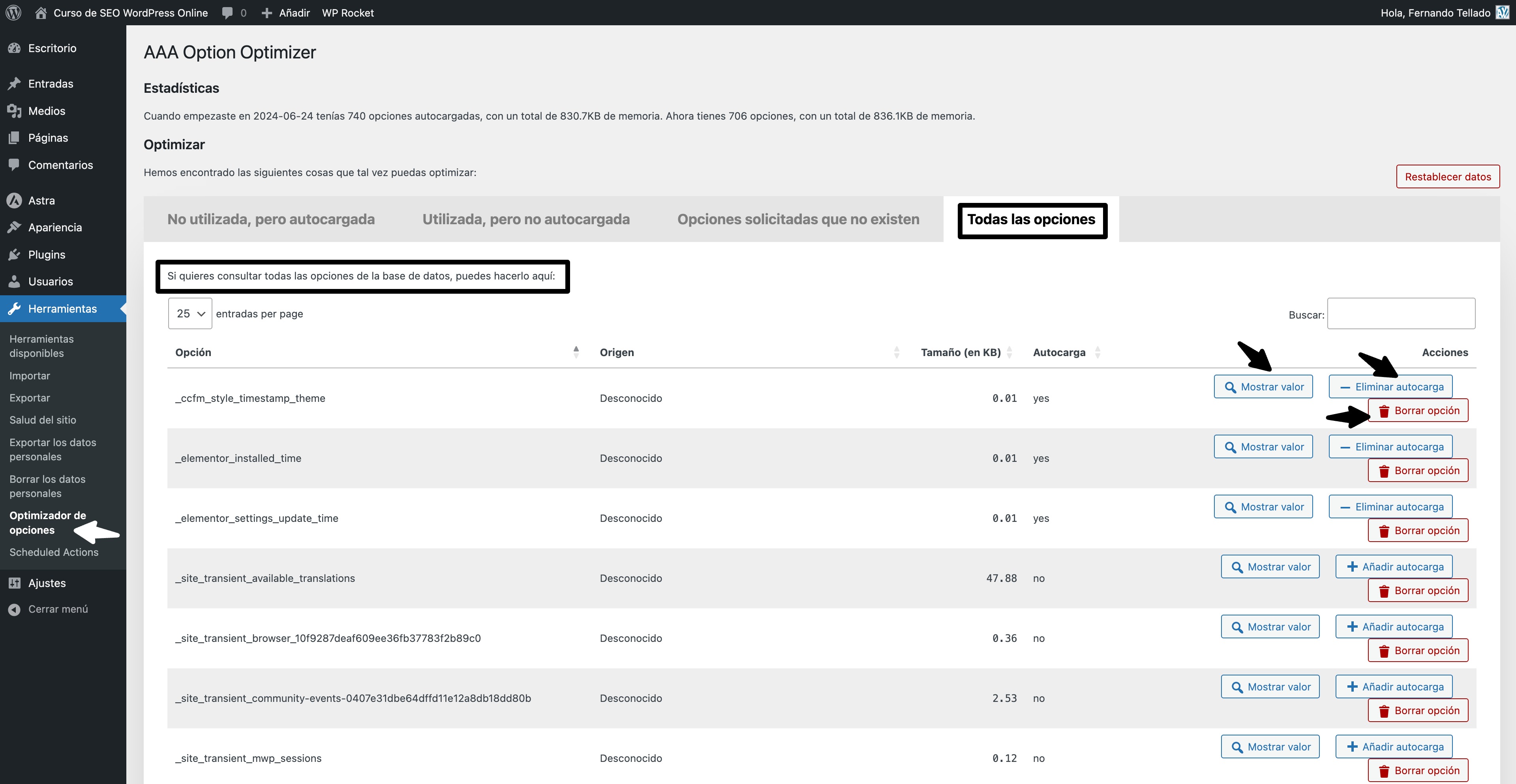 Pero ¿cómo saber qué opciones usa tu web o incluso cuáles necesitan autoload?