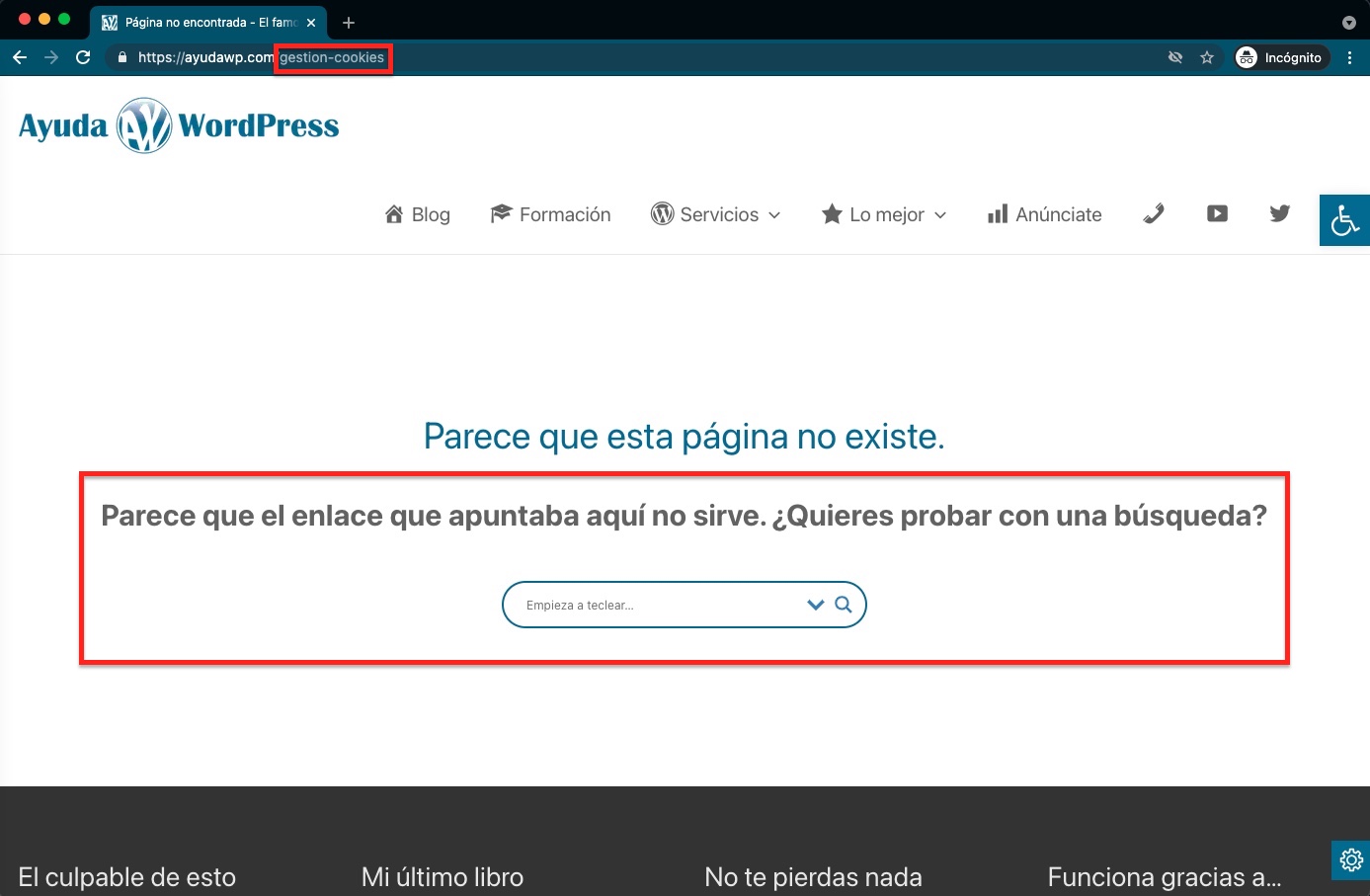 Mientras, los errores 404 de consultas de contenido dinámico los seguirás gestionando desde WordPress, para reconducir y aprovechar ese tráfico.
