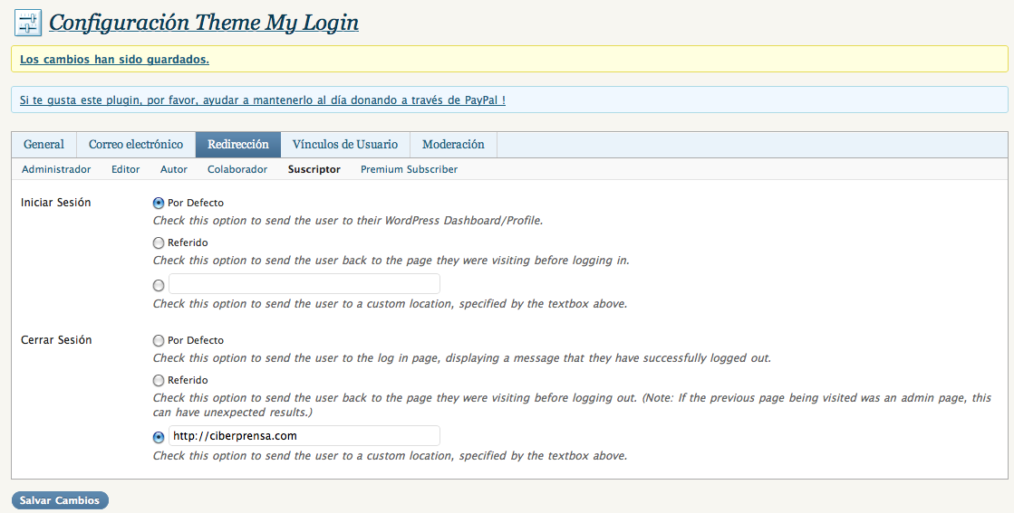 Hola soy nueva y novata. He instalado este plugin y todo esta bien configurado aparentemente, pero cuando un usuario accede a su area no le lleva a la pagina que yo quiero. Como puedo solucionarlo? me sale pagina no encontrada