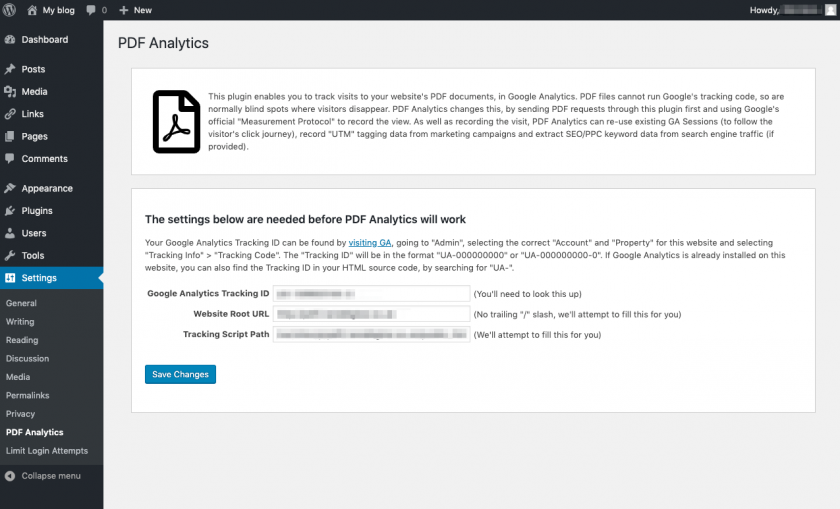 PDF Analytics es un plugin WordPress que rastrea las vistas de PDF en tu web, en Google Analytics.