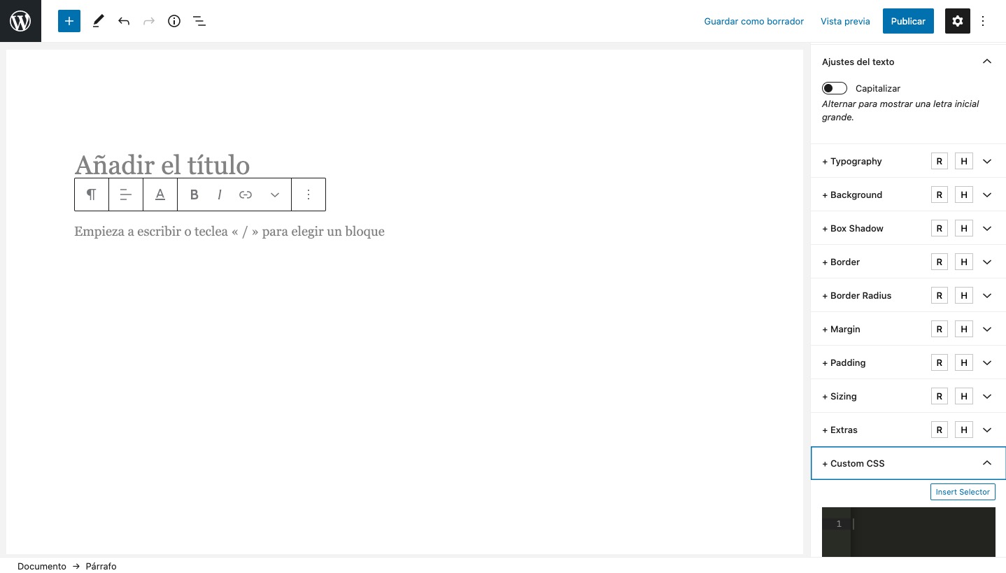 Porque claro, el editor de WordPress ofrece poca cosa a la hora de personalizar los bloques, cada vez más, pero poco, y parece que nunca llegará a los niveles de Divi u otros maquetadores como Elementor.