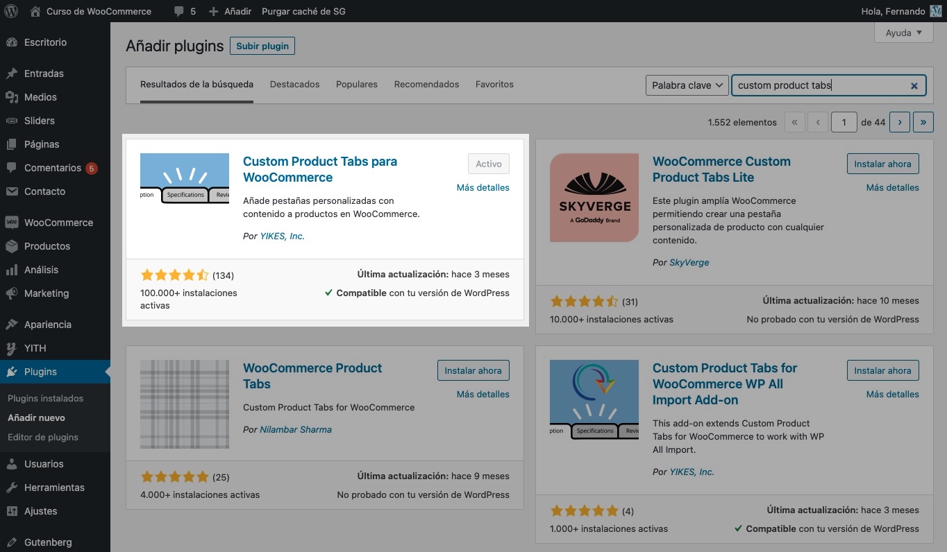 La verdad es que plugins para añadir pestañas personalizadas a los productos de WooCommerce hay muchos, tanto gratuitos como de pago, pero el mejor de todos, con diferencia, que llevo utilizando años y siempre con resultados perfectos, es Custom Product Tabs, que ofrece todo lo imprescindible y además es gratis.