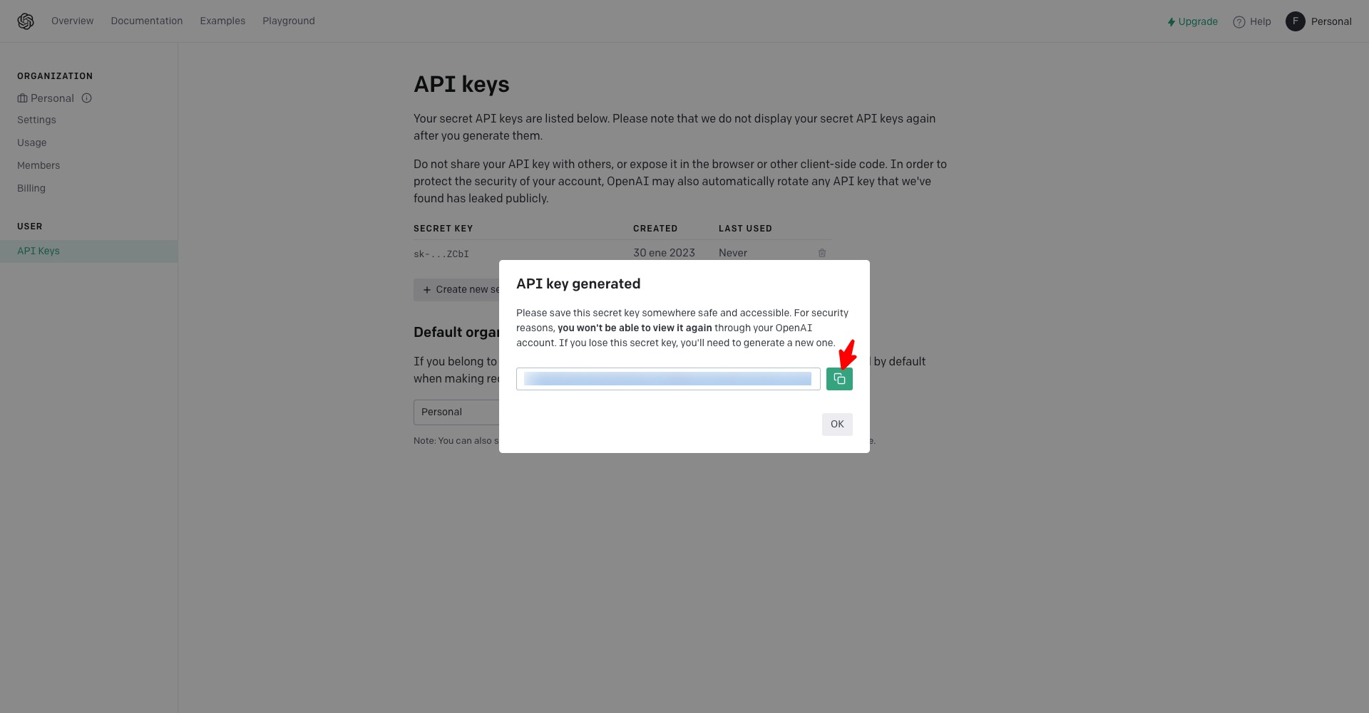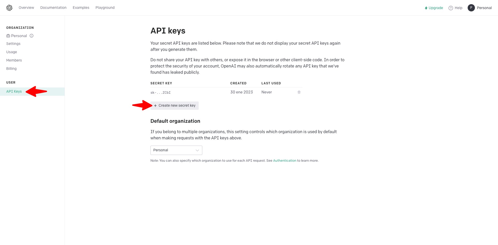 La clave API de OpenAI la puedes generar registrándote gratis en openai.com.