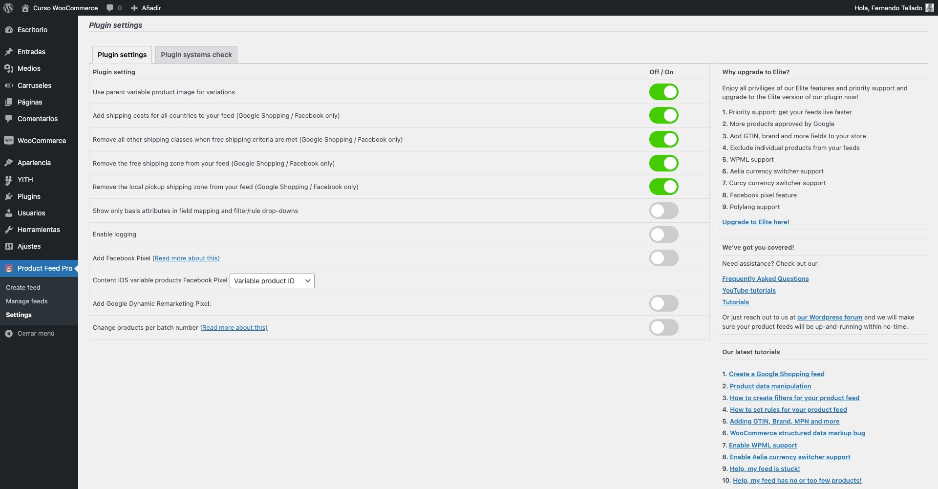 El plugin gratuito más completo que conozco de este tipo es Product Feed Pro for WooCommerce, que te permite enviar los feeds de productos, categorías, etiquetas, etc., de tu tienda online a los canales promocionales, de manera gratuita, de manera sencilla y efectiva, pudiendo controlar qué productos se promocionan y cuáles no.