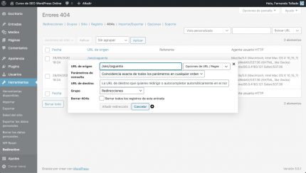 Creo que ya sabrás de mi amor por el plugin Redirection, pues no tiene igual a la hora de gestionar y crear redirecciones, además de arreglar errores 404 y otras muchas funcionalidades avanzadas relacionadas con el SEO.