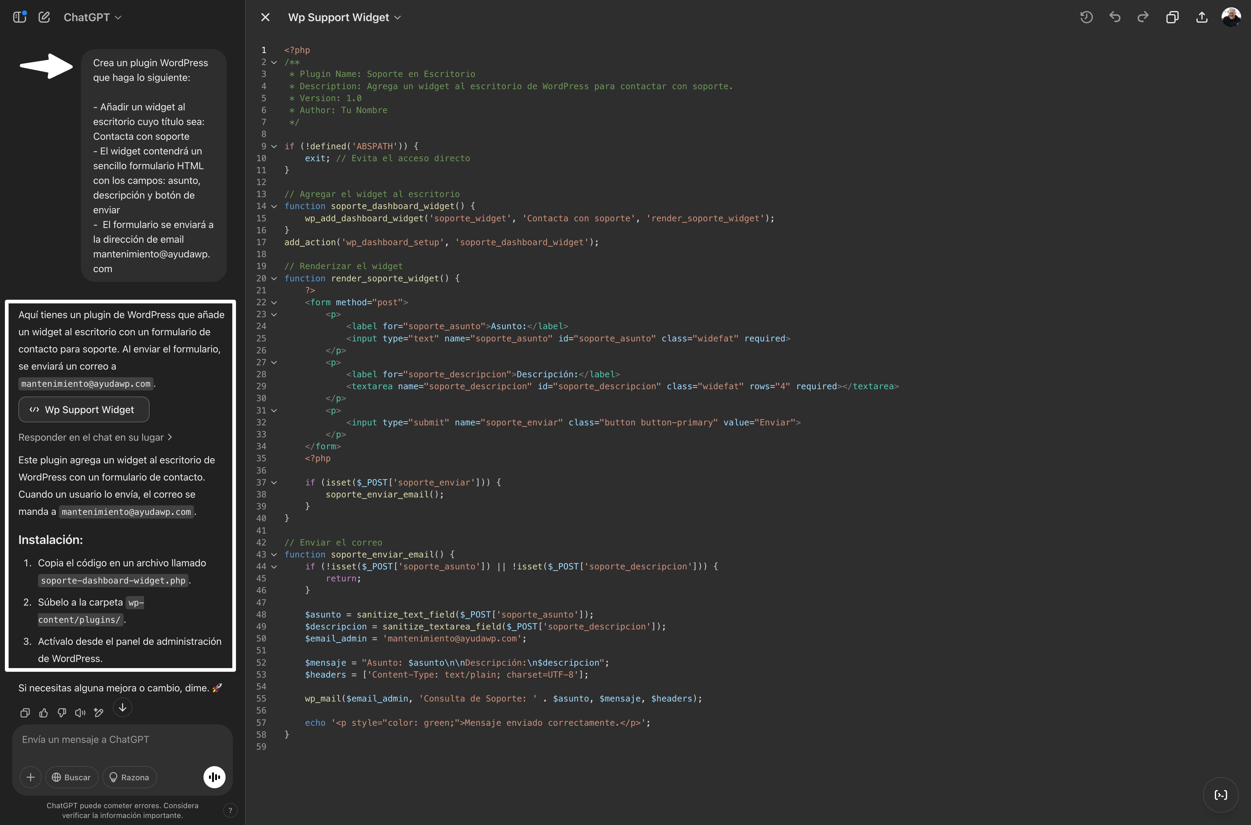 Si no te complicas en tu cabecita y no pides demasiado, o lo que es peor, mientras no encargues a la IA crear un código que no sepas depurar, la inteligencia artificial generativa puede ayudarte con la creación básica de plugins sencillos para WordPress, siempre que partas de unas instrucciones lo más precisas posibles, como por ejemplo…