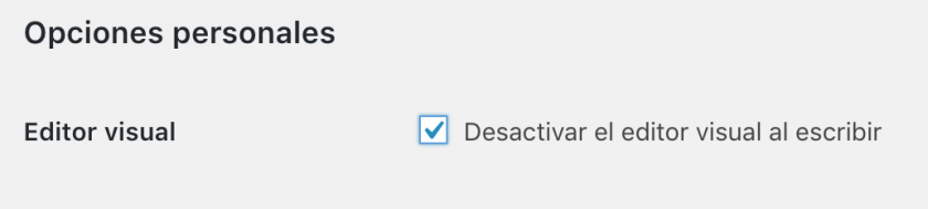 Porque claro, quitarla para solo tu usuario o algún usuario en concreto es fácil, solo tienes que editar el perfil de usuario y activar la casilla que desactiva el editor visual.